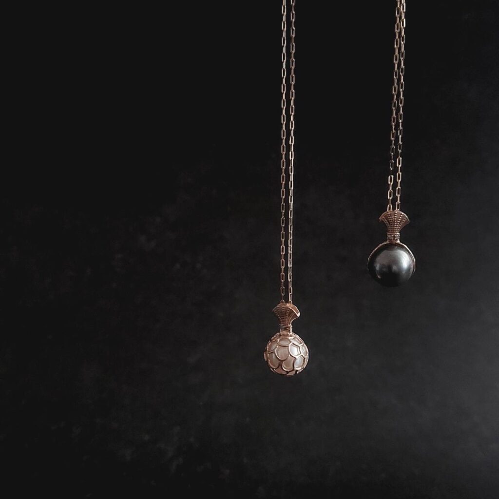 南洋パール、タヒチアンパール、アコヤパール。それぞれのパールが持つ色や質感を活かし、肌なじみの良い地金の質感と掛け合わせています。